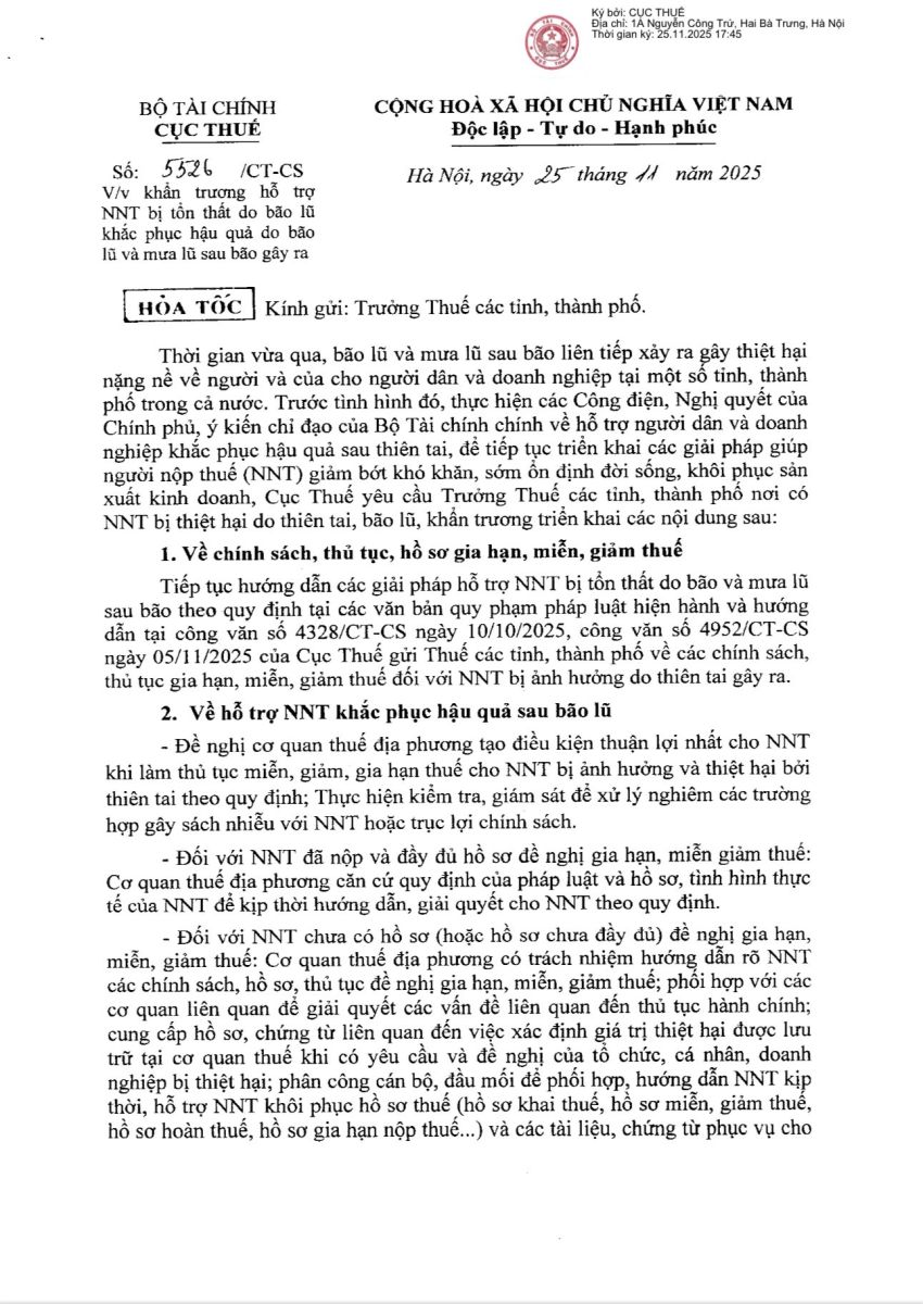 Chuyên mục: Tin tứcCục Thuế hỗ trợ Người nộp thuế bị tổn thất do bão lũĐăng lúc 28, Tháng 11, 2025 bởi Lap OfficeCục Thuế hỗ trợ Người nộp thuế bị tổn thất do bão lũ khắc phục hậu quả do bão lũ và mua lũ sau bão gây ra