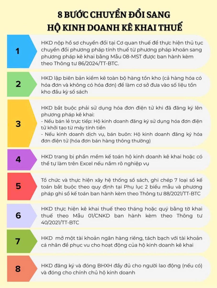 ‼️Sau đây là 8 bước để chuyển đổi từ thuế khoán sang kê khai thuế hộ kinh doanh cần lưu ý